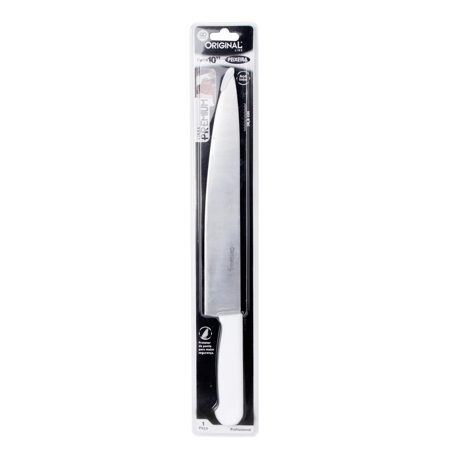 As facas da linha da Original Line, tem tudo para deixar a sua cozinha completa pois é indicada para auxiliar no preparo de suas receitas. Fabricada em lâmina de aço inox com cabo em madeira que facilita o manuseio e a limpeza. Indicada para corte de carnes, legumes e frutas.
